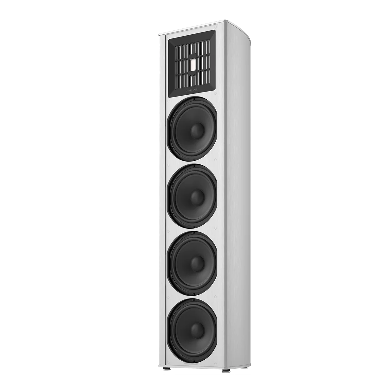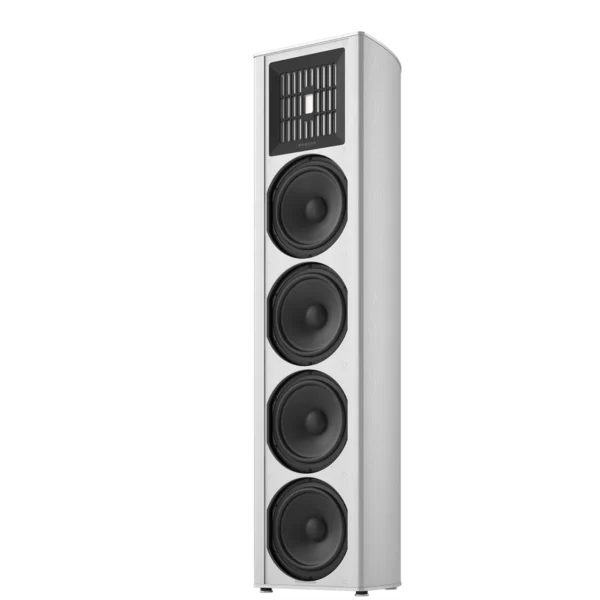 Für Musikfreunde mit grösseren Wohnräumen und einem Bedarf an kräftigen und tiefen Bässen ist dieser Drei-Wege- Standlautsprecher die erste Wahl. Unterhalb des grossen Koxialbändchens C211 warten gleich vier 220 mm grosse Tieftöner darauf, ordentliche Luftmassen in Bewegung zu versetzen – zwei vom angeschlossenen Verstärker aktiv angetrieben, zwei als Passivmembranen zur Untermauerung der Basswiedergabe.